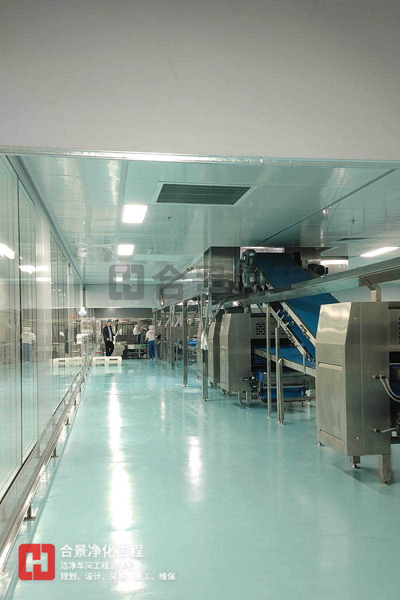 根據(jù)生產(chǎn)工藝特性,將食品廠凈化車間劃分為不同潔凈區(qū)域(如30萬級、10萬級、萬級)。通過壓差梯度實現(xiàn)氣流定向流動:清潔區(qū)與非清潔區(qū)保持≥10Pa正壓差;高風險操作區(qū)形成相對正壓核心區(qū);物料傳遞口設(shè)置雙扉連鎖氣閘裝置;人員通道采用風淋室與緩沖間雙重隔離。
