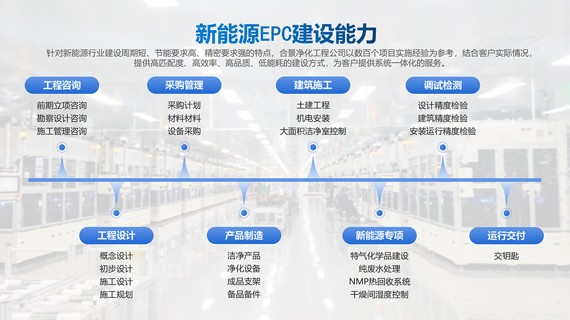 合景智慧建設(shè)深耕工程建設(shè)領(lǐng)域二十余年,是國內(nèi)高科技工業(yè)建筑領(lǐng)域EPC服務(wù)佼佼者,尤其是新能源電池、OLED、半導體、光學鏡片、芯片、食品及原料加工、一二類醫(yī)療器械領(lǐng)域廠房建設(shè)的業(yè)績突出。公司始終堅持智慧智能總包建設(shè)和“與顧客共同創(chuàng)造價值”的經(jīng)營理念,在項目初期、施工、服務(wù)等方面依據(jù)合景智慧建設(shè)技術(shù)團技術(shù)建議,提高建造效率,減少建廠能耗等成本,實現(xiàn)業(yè)主效益最大化。